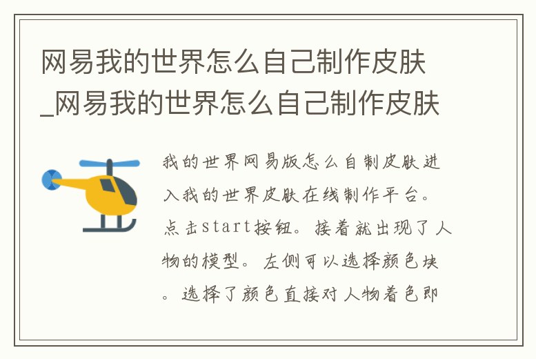 網易我的世界怎么自己制作皮膚_網易我的世界怎么自己制作皮膚視頻