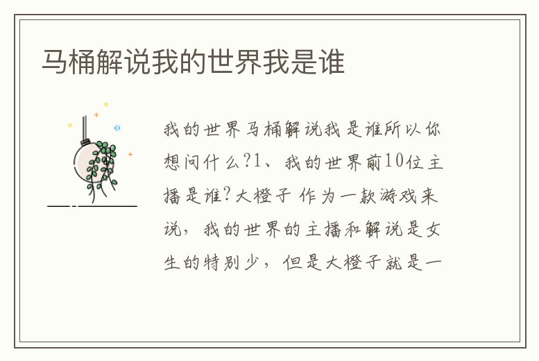 8、我的世界馬桶解說的第一個我的世界視頻是什么