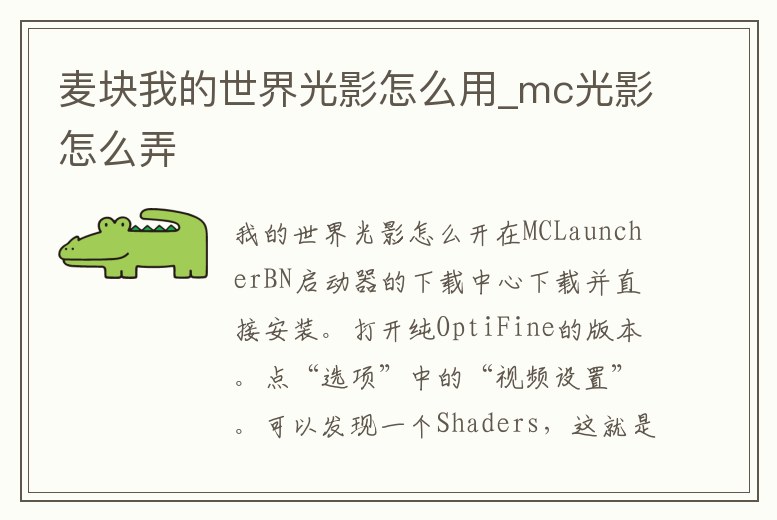 麥塊我的世界光影怎么用_mc光影怎么弄