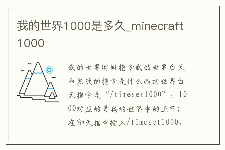 我的世界時間指令我的世界白天和黑夜的指令是什么我的世界白天指令是“/timeset1000”,1000對應的是我的世界中的正午;在聊天框中輸入/timeset1000,然后回車確定即可。我的世界黑夜指令是“/timeset14400”,14400這個數值對應的是我的世界中的午夜;同樣。1、我的世界一天等于多少刻我的世界