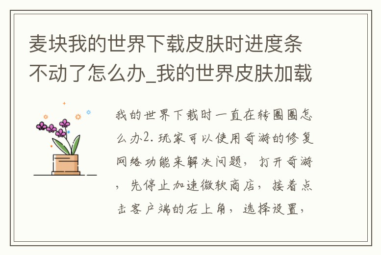 麥塊我的世界下載皮膚時進度條不動了怎么辦_我的世界皮膚加載