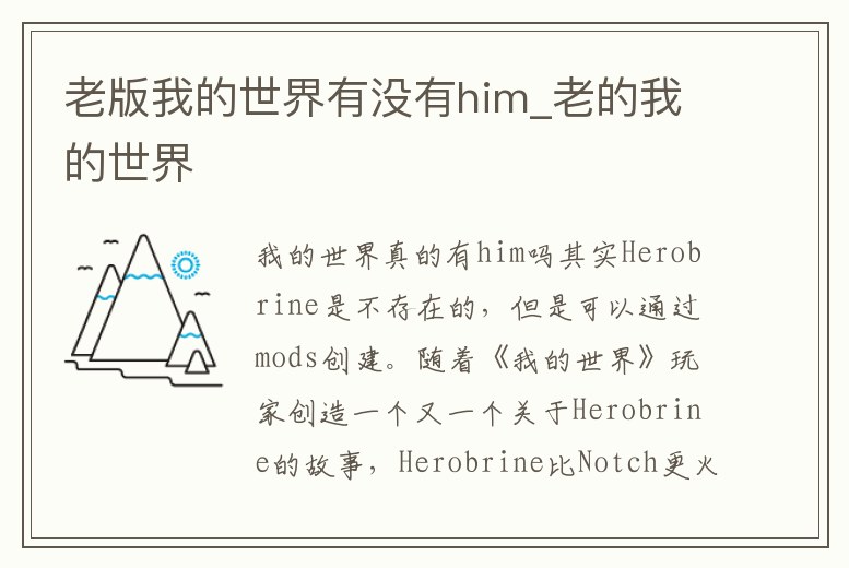 我的世界真的有him。Herobrine是《我的世界》相關社區創作出來的一個Creepy-pasta(恐怖故事)的主角。如今,他已經成為MC粉絲們以及相關社區里的一個重要標志形象。雖然Herobrine經常被Mojang團隊,以及MC相關社區所提及。