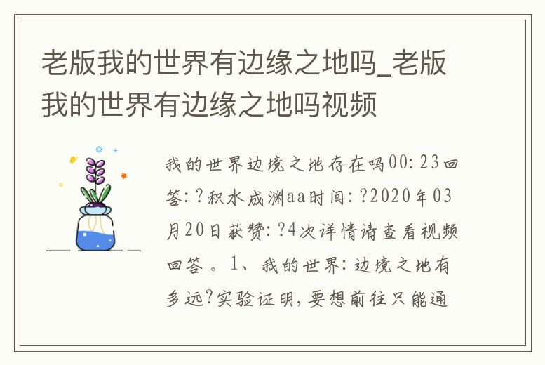 - 老版我的世界有邊緣之地嗎_老版我的世界有邊緣之地嗎視頻