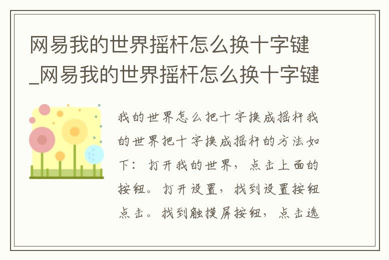 網易我的世界搖桿怎么換十字鍵_網易我的世界搖桿怎么換十字鍵
