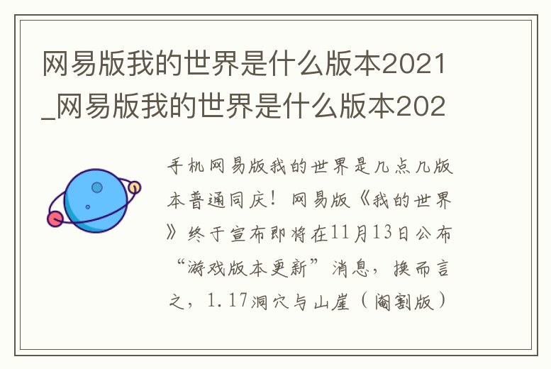 網易版我的世界是什么版本2021_網易版我的世界是什么版本2021下載