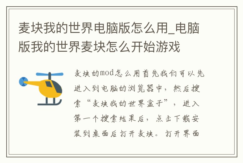- 麥塊我的世界電腦版怎么用_電腦版我的世界麥塊怎么開始游戲