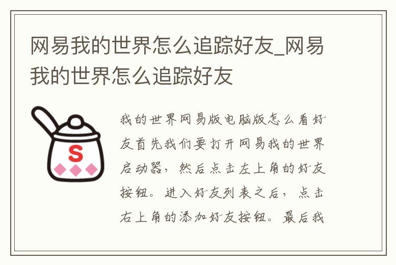 - 網(wǎng)易我的世界怎么追蹤好友_網(wǎng)易我的世界怎么追蹤好友