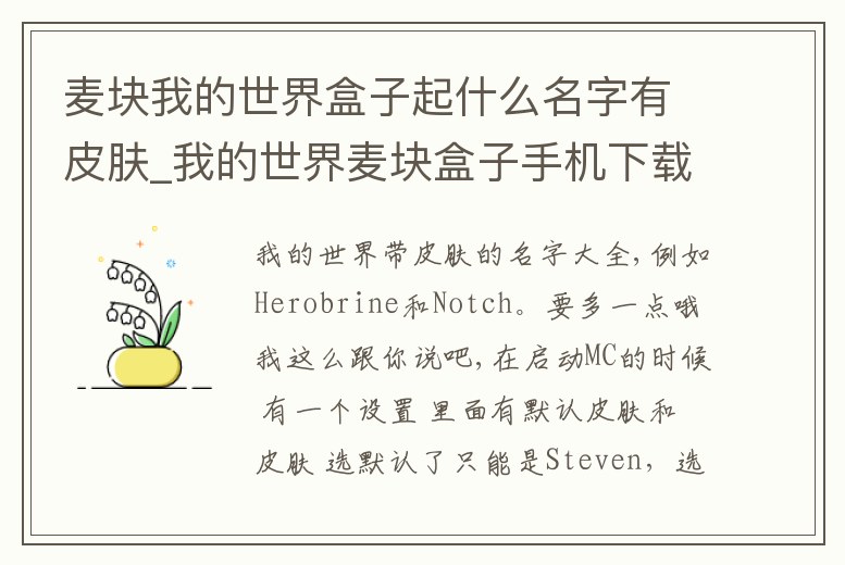 麥塊我的世界盒子起什么名字有皮膚_我的世界麥塊盒子手機下載手機版