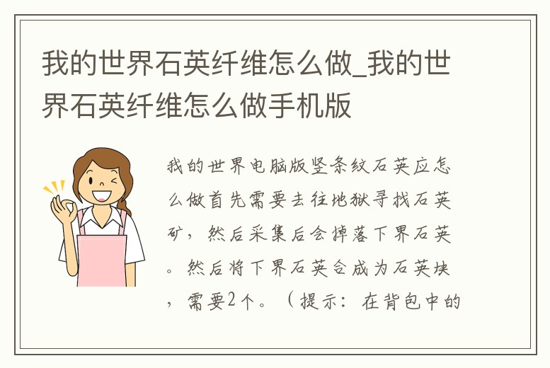 我的世界石英纖維怎么做_我的世界石英纖維怎么做手機版