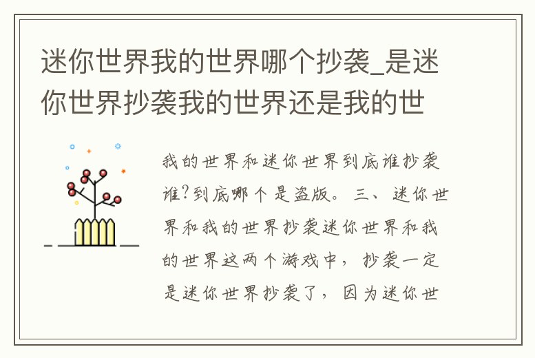2、迷你世界抄襲我的世界嗎?還是我的世界抄襲迷你