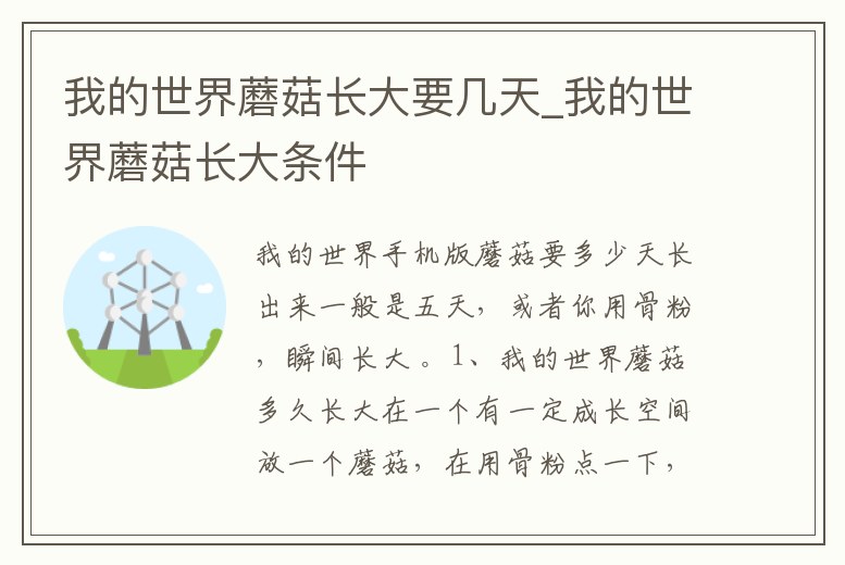 我的世界蘑菇長大要幾天_我的世界蘑菇長大條件