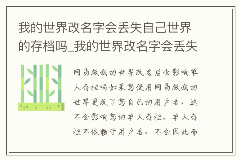 我的世界改名字會丟失自己世界的存檔嗎_我的世界改名字會丟失自己世界的存檔嗎手機版