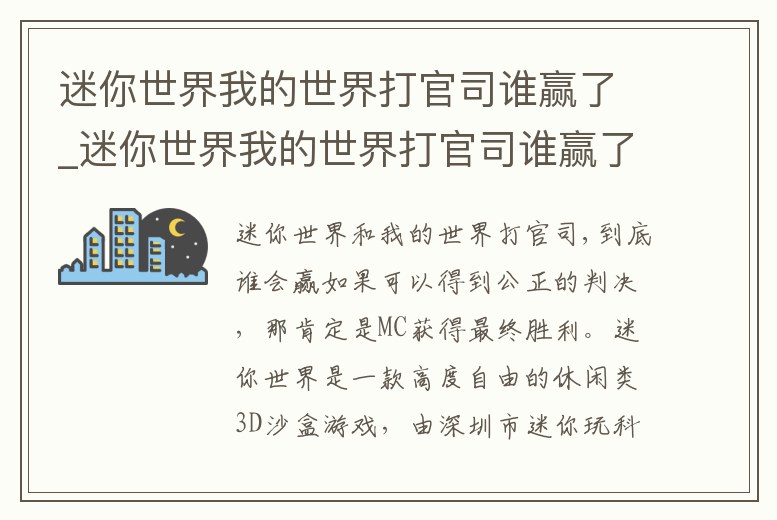 迷你世界我的世界打官司誰贏了_迷你世界我的世界打官司誰贏了2022