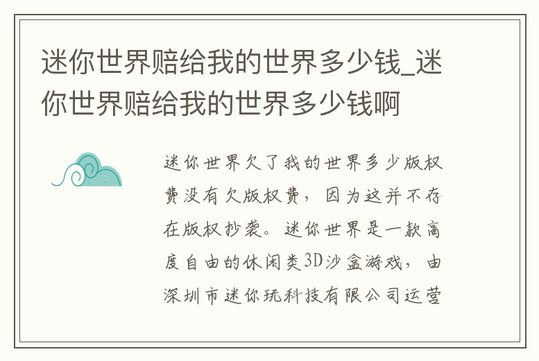 - 迷你世界賠給我的世界多少錢_迷你世界賠給我的世界多少錢啊