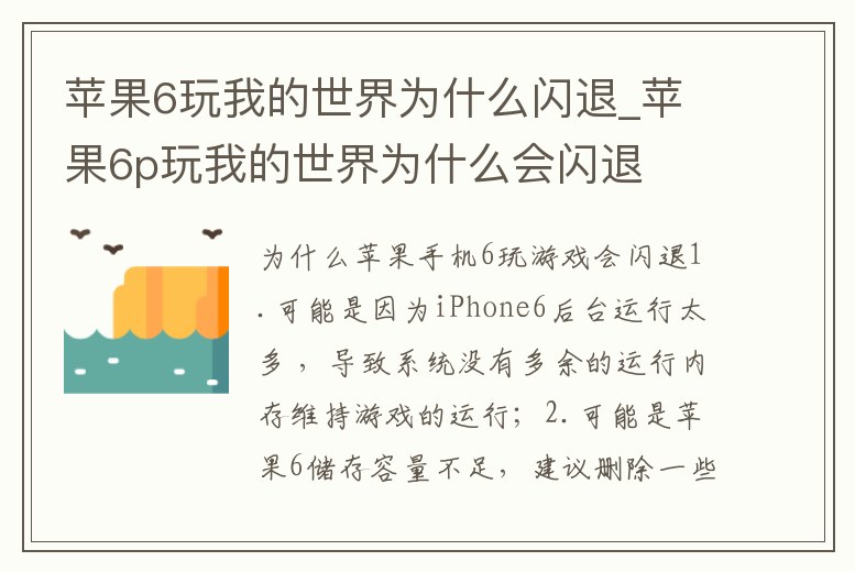 蘋果6玩我的世界為什么閃退_蘋果6p玩我的世界為什么會閃退