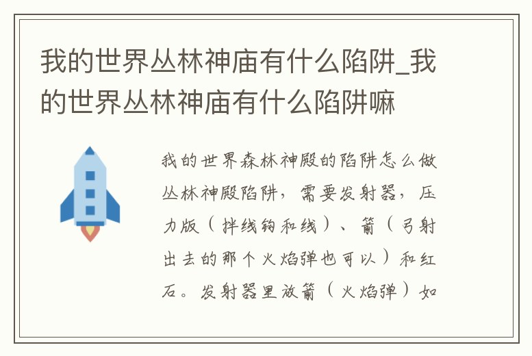 我的世界叢林神廟有什么陷阱_我的世界叢林神廟有什么陷阱嘛