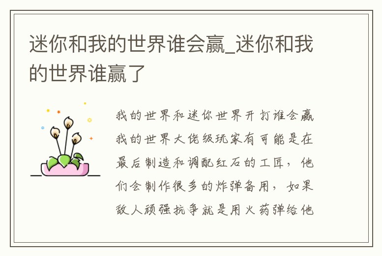 - 迷你和我的世界誰會贏_迷你和我的世界誰贏了