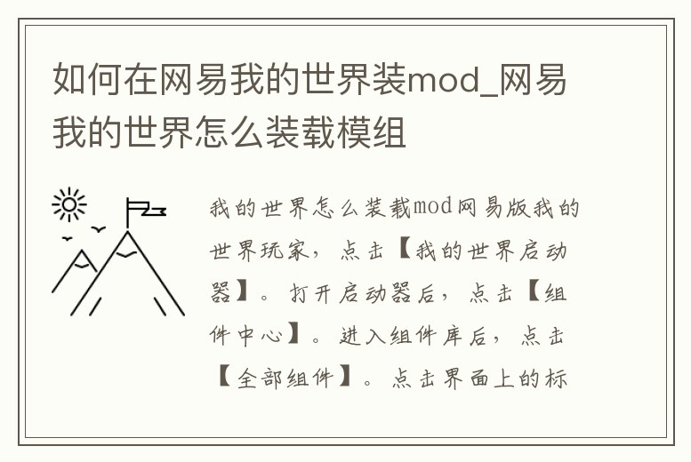 如何在網易我的世界裝mod_網易我的世界怎么裝載模組