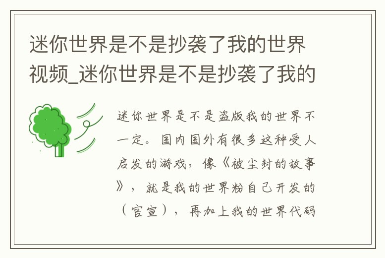 - 迷你世界是不是抄襲了我的世界視頻_迷你世界是不是抄襲了我的世界視頻教程