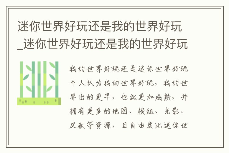 迷你世界好玩還是我的世界好玩_迷你世界好玩還是我的世界好玩投票