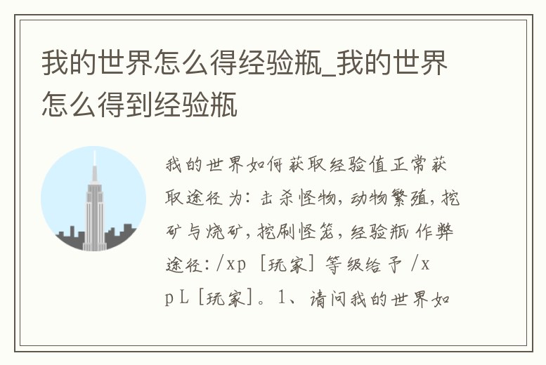 - 我的世界怎么得經(jīng)驗(yàn)瓶_我的世界怎么得到經(jīng)驗(yàn)瓶