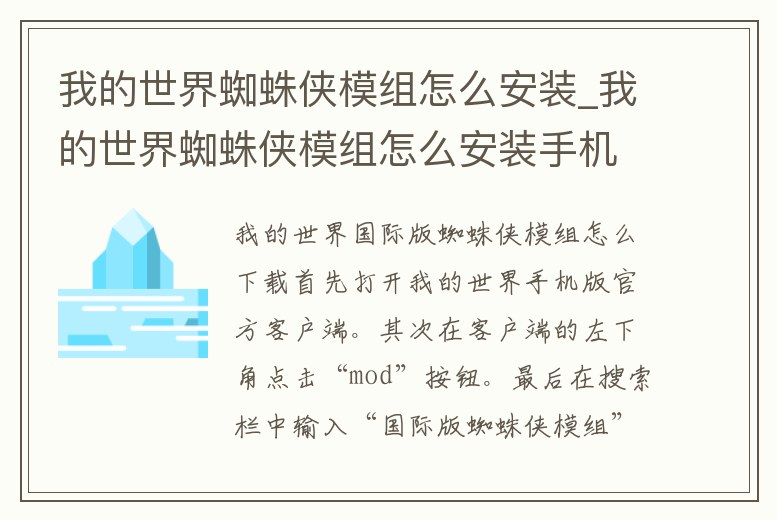 - 我的世界蜘蛛俠模組怎么安裝_我的世界蜘蛛俠模組怎么安裝手機(jī)版