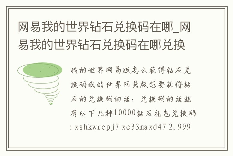 網易我的世界鉆石兌換碼在哪_網易我的世界鉆石兌換碼在哪兌換