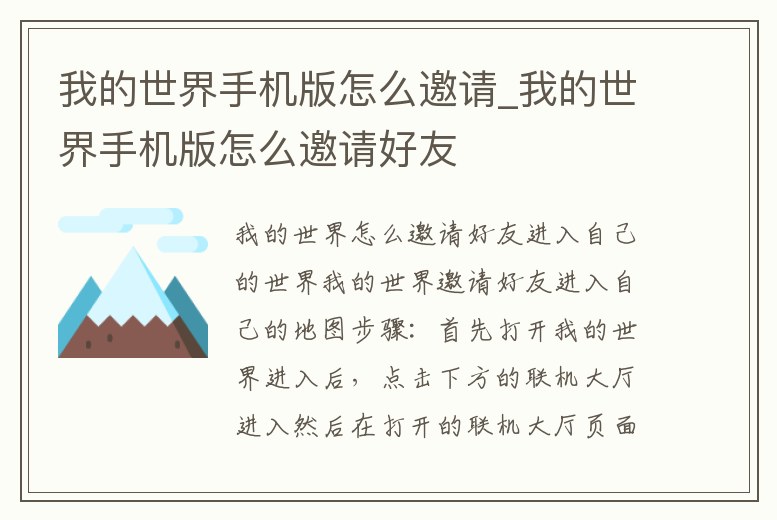 - 我的世界手機(jī)版怎么邀請(qǐng)_我的世界手機(jī)版怎么邀請(qǐng)好友