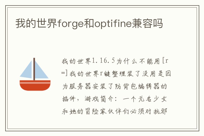 我的世界1.16.5為什么不能用[r=]我的世界r鍵整理裝了沒用是因為服務器安裝了防背包編輯器的插件,游戲簡介:一個無名少女和她的冒險家伙伴們必須對抗邪惡的末影龍,后者正走在毀滅的道路上,威脅著要摧毀這個封閉的星球。游戲可單人可多人,玩家在一個三。1、我的世界1.8安裝完Forge,shader之后再裝Optifine打開界面時無法正常網友分享:你把你的資源包換成原版