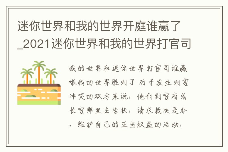 - 迷你世界和我的世界開庭誰贏了_2021迷你世界和我的世界打官司誰贏了