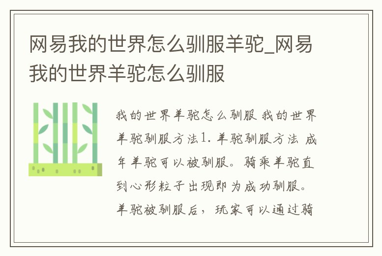 - 網(wǎng)易我的世界怎么馴服羊駝_網(wǎng)易我的世界羊駝怎么馴服