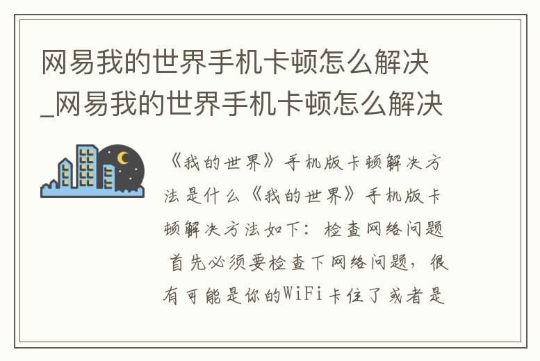 - 網(wǎng)易我的世界手機(jī)卡頓怎么解決_網(wǎng)易我的世界手機(jī)卡頓怎么解決