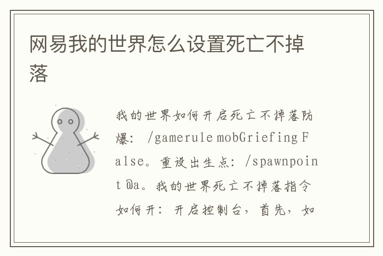 - 網(wǎng)易我的世界怎么設(shè)置死亡不掉落
