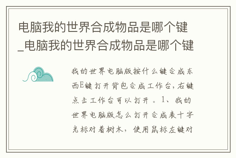 電腦我的世界合成物品是哪個鍵_電腦我的世界合成物品是哪個鍵位