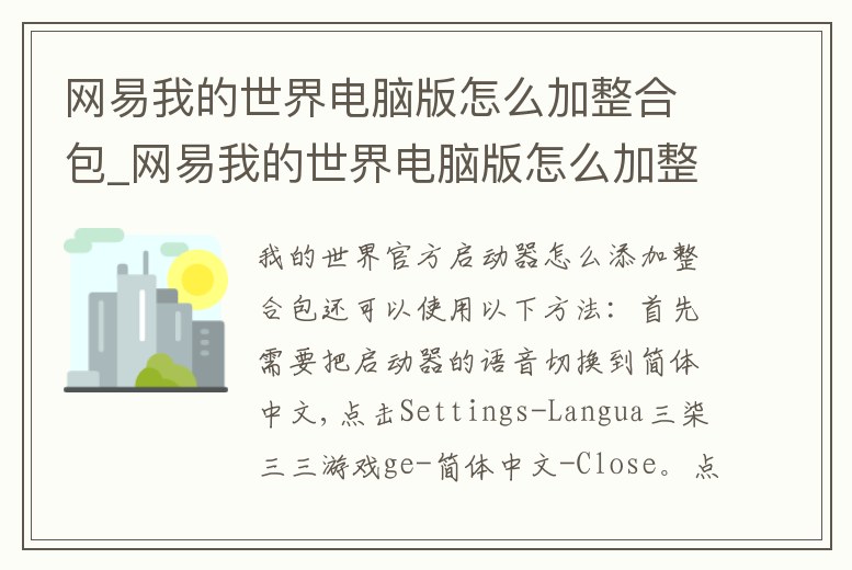 網易我的世界電腦版怎么加整合包_網易我的世界電腦版怎么加整合包存檔