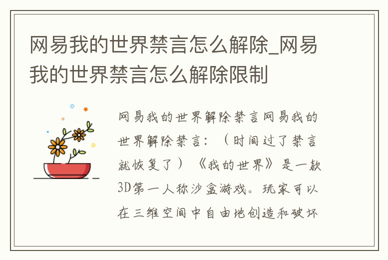 - 網(wǎng)易我的世界禁言怎么解除_網(wǎng)易我的世界禁言怎么解除限制