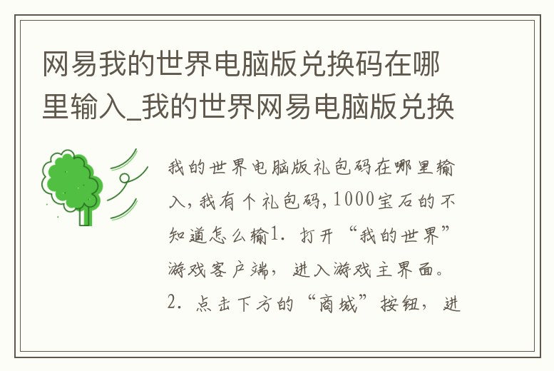 - 網(wǎng)易我的世界電腦版兌換碼在哪里輸入_我的世界網(wǎng)易電腦版兌換碼在哪里兌換
