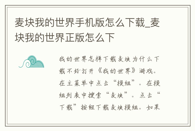 麥塊我的世界手機版怎么下載_麥塊我的世界正版怎么下