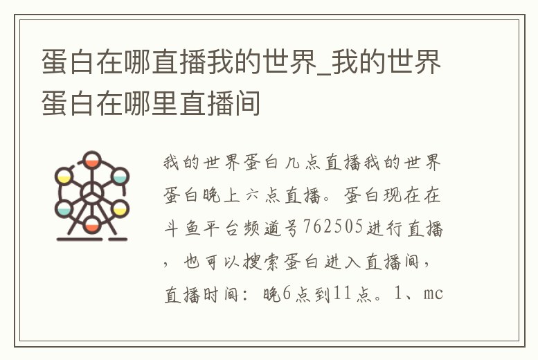 - 蛋白在哪直播我的世界_我的世界蛋白在哪里直播間