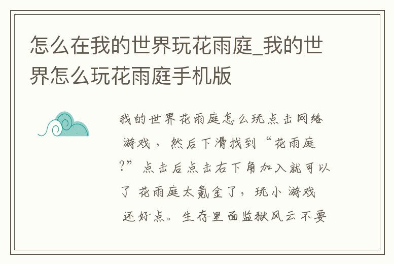 - 怎么在我的世界玩花雨庭_我的世界怎么玩花雨庭手機(jī)版