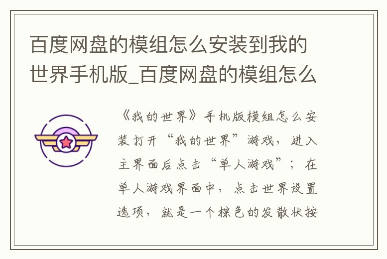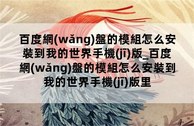 - 百度網(wǎng)盤的模組怎么安裝到我的世界手機(jī)版_百度網(wǎng)盤的模組怎么安裝到我的世界手機(jī)版里