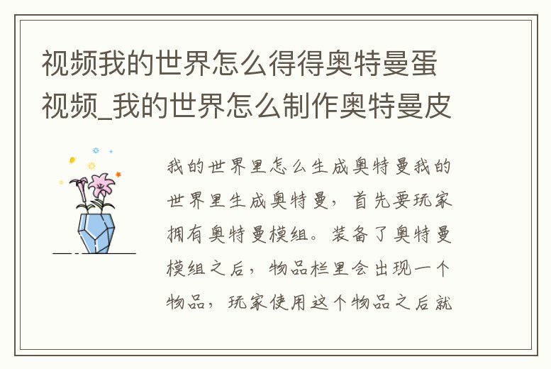 視頻我的世界怎么得得奧特曼蛋視頻_我的世界怎么制作奧特曼皮膚