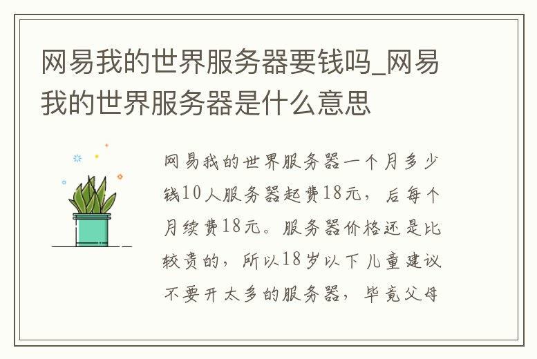 網易我的世界服務器要錢嗎_網易我的世界服務器是什么意思