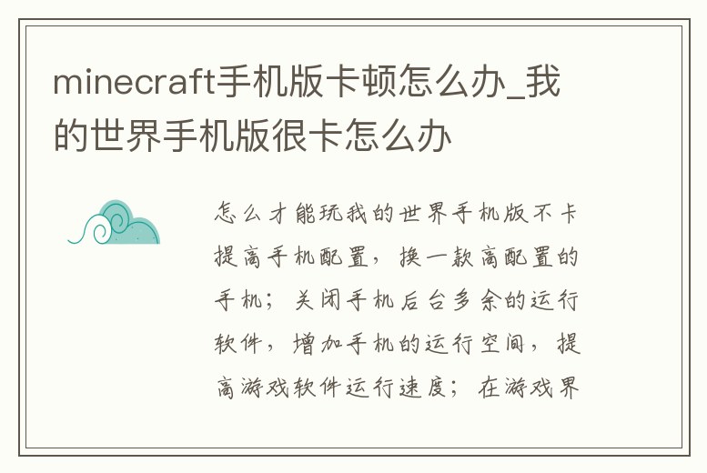 minecraft手機版卡頓怎么辦_我的世界手機版很卡怎么辦