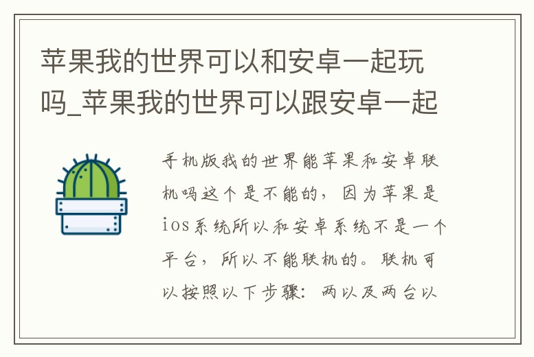 - 蘋果我的世界可以和安卓一起玩嗎_蘋果我的世界可以跟安卓一起玩嗎