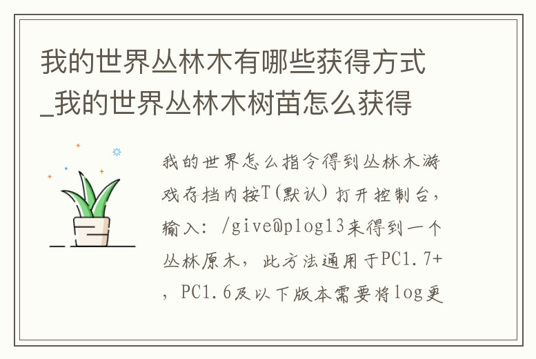我的世界叢林木有哪些獲得方式_我的世界叢林木樹苗怎么獲得