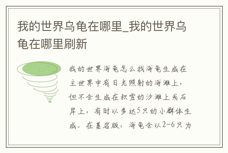 - 我的世界烏龜在哪里_我的世界烏龜在哪里刷新