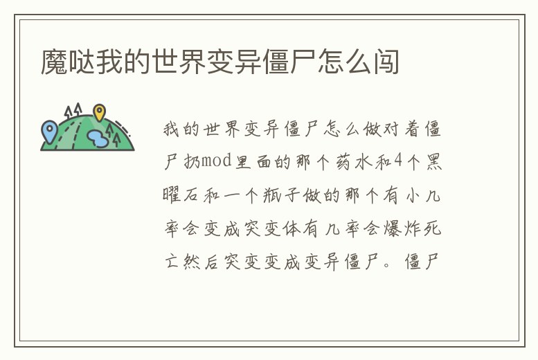 - 魔噠我的世界變異僵尸怎么闖