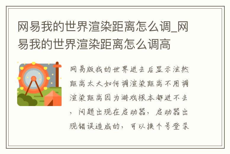 網易我的世界渲染距離怎么調_網易我的世界渲染距離怎么調高