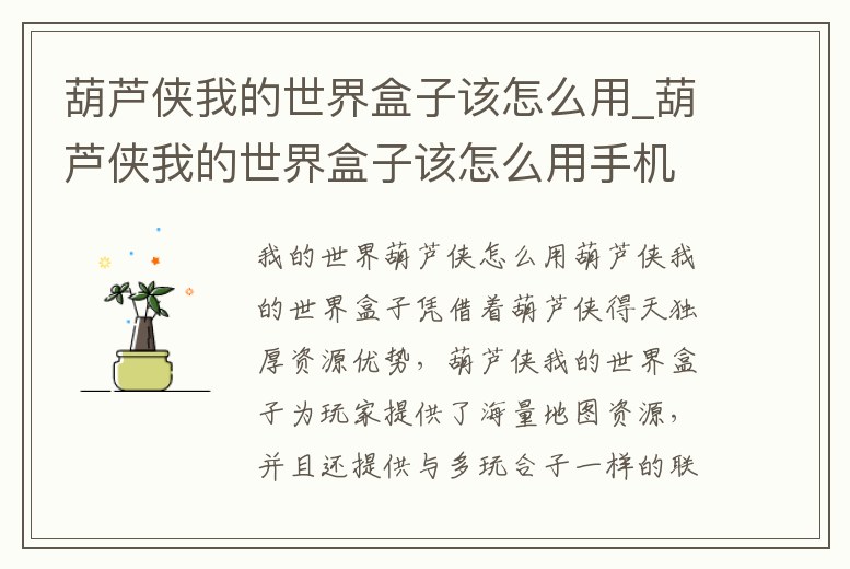 葫蘆俠我的世界盒子該怎么用_葫蘆俠我的世界盒子該怎么用手機玩